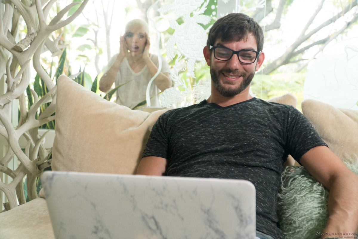 Instead of looking for job interviews, Logan Long ganders at the Nuru Massage website with sexual desire. As his girlfriend Aaliyah Hadid leaves for work, she notices him watching porn and decides to do something special for him. She surprises Logan in the bathroom with all the Nuru gear, to reenact the full experience. They head towards the shower, Aaliyah lathers Logan’s chest seductively, where they are both incredibly aroused. Aaliyah goes down on her knees and starts sucking his huge cock and stuffs her mouth with his ball sack. They proceed to the Nuru bed as Aaliyah Hadid applies the sticky gel over her ripe boobs and Logan’s body. She has him turn around and continues to suck on his massive cock and teases his erection with her busty ass. Logan sticks his cock inside her tight pussy and she rides his dick vigorously in different positions, until Logan takes charge pounding her wet pussy, popping his hot load over her beautiful face.