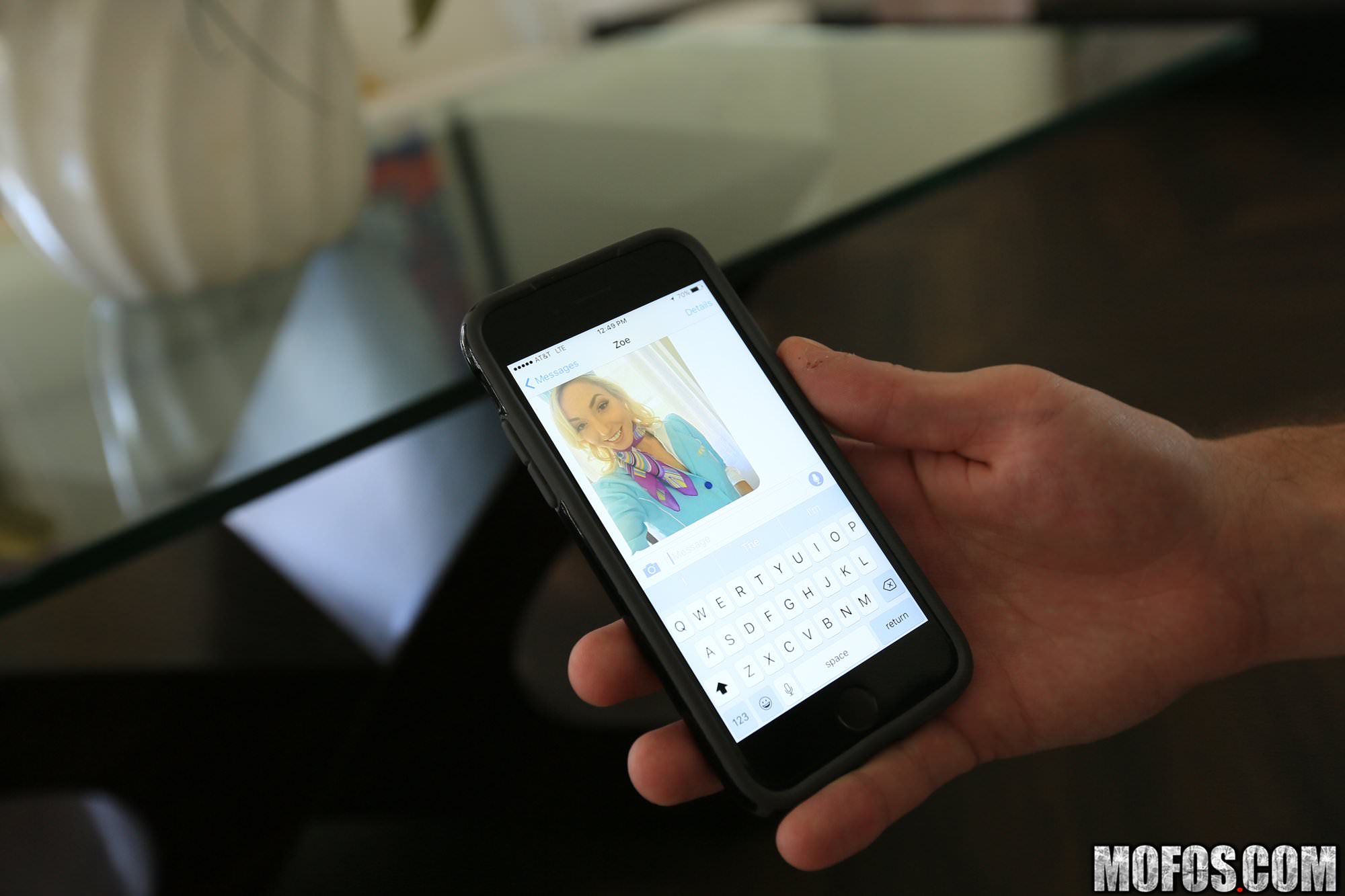 Gorgeous assy stewardess Zoe uses her layover to visit her horny bf. She shows him some skin before getting into the house but then she blows his hard dick and gets fucked in that seductive black stockings!