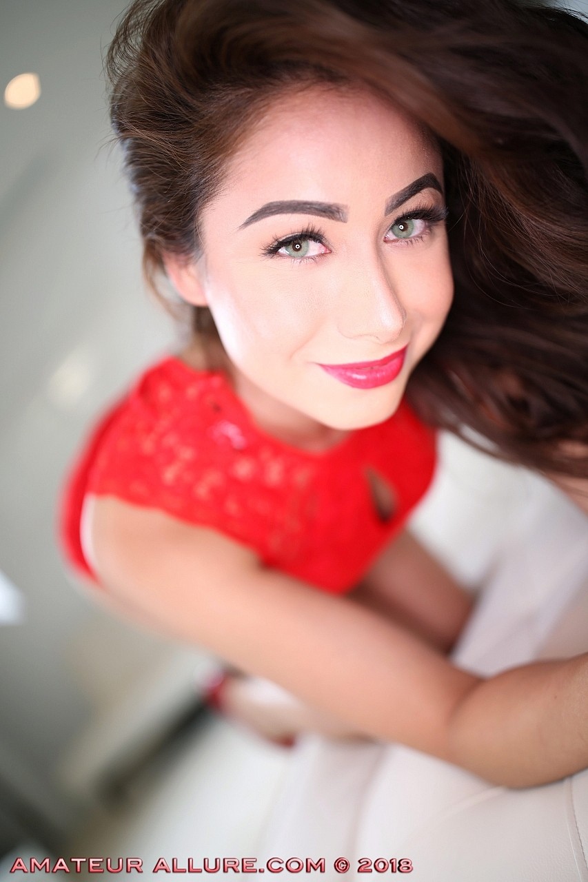 Happy Valentine’s Day! Lilly Evans aka Athena is back at Amateur Allure to give Ray an other special treat. First Athena unwraps her gift and begins licking Ray’s cock with her soft tongue. Then she starts jerking and sucking getting Ray nice and hard. For the second part of Athena’s Valentine’s present Ray lays her back and goes balls-deep in her tight pussy. Athena moans in ecstasy as Ray pounds her out. Athena can’t get enough and climbs on Ray’s lap for some exciting cowgirl action. Then Ray flips her over and gives her a good drilling from behind. Ray finishes off this session by firing a hot, thick load all over Athena’s tongue which she swallows with a smile! Happy Valentine’s Day once again!