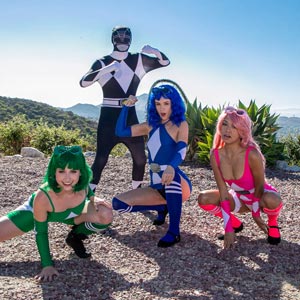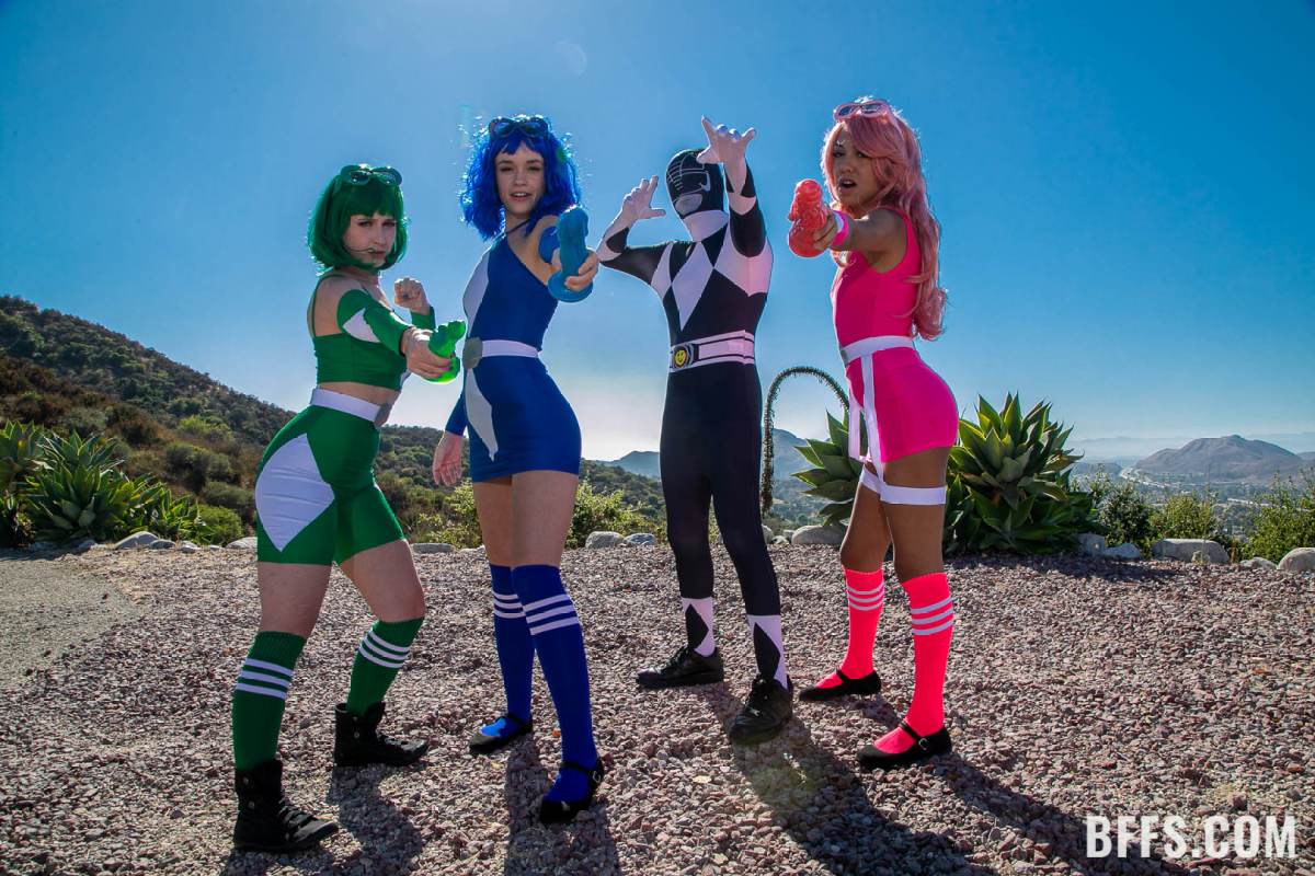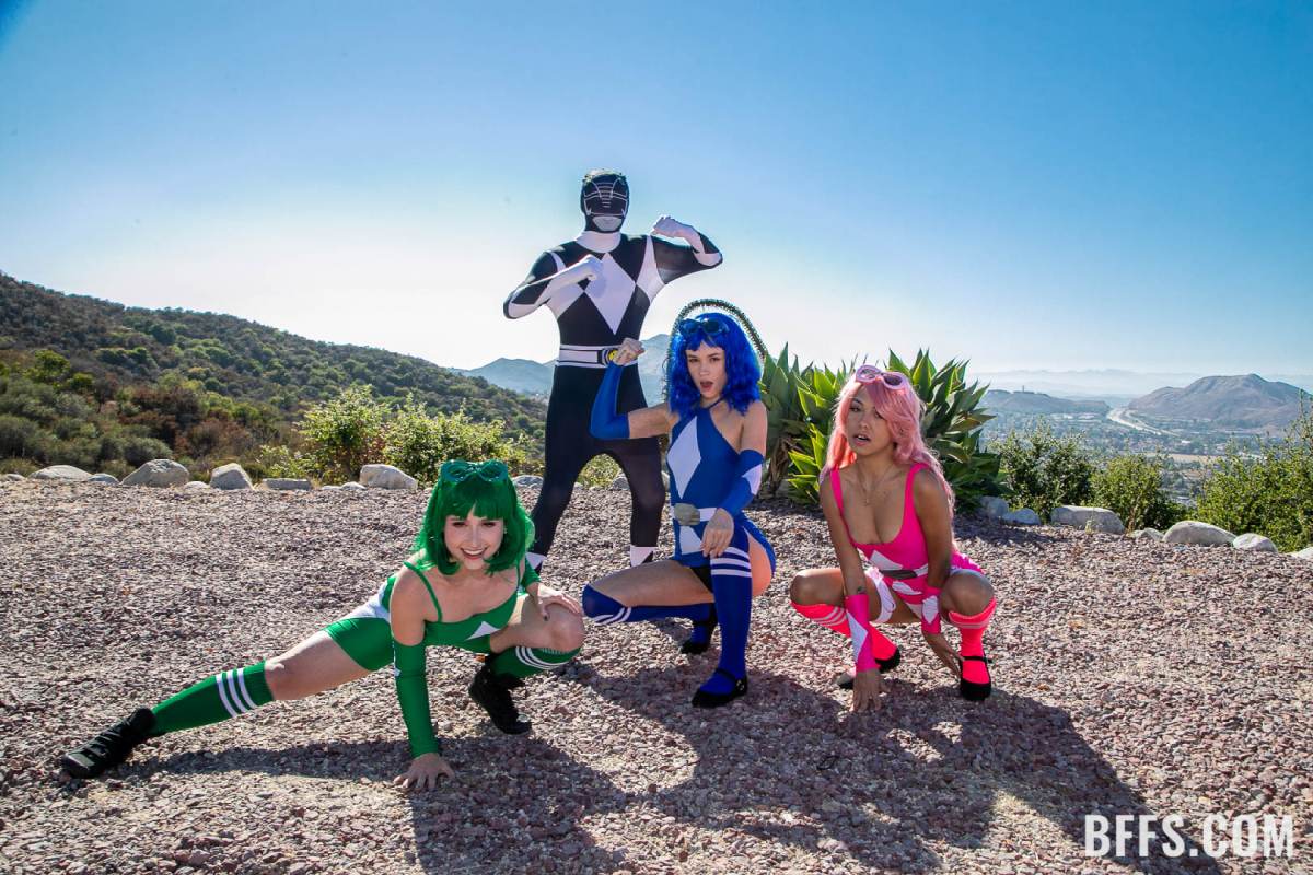Power Ranger BFFs Laney Grey, Khloe Kingsley and Bianca Bangs are on a mission to defeat the enemy, but the black ranger fell asleep so there is only three of them. Unfortunately even their mighty dildos won’t help this time. They return back to the base to find the fourth one just getting up. They are pretty angry at Elias so he needs to perform there on the couch. Their tight pussies need a relief and his mighty dick will just do fine fucking all three of them! BFFs Mighty Power Pussy Smashers is out now. Enjoy the free BFFs video trailer below!