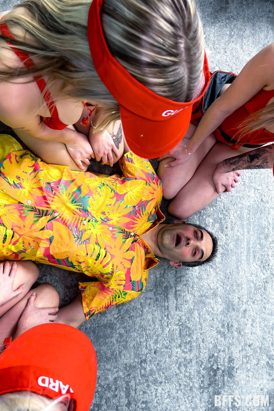 CPR is a really important thing to learn, it stands for cardiopulmonary resuscitation and BFFs Claire Roos, Jill Taylor, Thea Summers are well aware of that fact! They want to land lifeguard gigs this spring break so they are here to test their timing and overall readiness. However somebody is watching them and is waiting for the perfect time to test their abilities. Donnie the horny neighbor comes over to the ladies and pretends to faint in front of them.. The BFFs as real profession so they take the patient indoors and start a CPR. After the traditional techniques fail they try a more creative approach. Instead of mouth they try to blow his dick and it seems to be working. While Claire Roos is sucking on that hard cock Jill Taylor performs the unknown pussy-to-mouth breathing technique. Seems like these besties are really committed to the cause! BFFs Pussy-to-Mouth CPR is coming this Wednesday in 4K!
