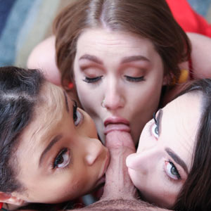 BFFs Adriana Maya, Dani Damzel and Aria Kai are making cookies for the holidays. Their busty bestie got a great idea. She usually hides the cookies for Santa. But this time they will hide as well and wait for him behind the curtain. As promised he comes down the stairs looking for the cookies so the besties can catch him. It’s time for a little interrogation. It turns out its the party makers steppy. What the fuck? Now it’s no turning back.