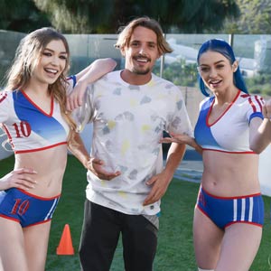 Varsity captain Vanessa Sky and her sexy soccer bffs Jewelz Blu and Mackenzie Moss are having fun outdoors during their training but they want to relax a little. It’s Vanessa’s last day as captain so they call over Tyler to hang out with them. After a short talk they end up sucking and riding his rock hard dick. No wonder this hot BFFs Scoring For Captain foursome scene is going to be one of the bests ever. Tyler can’t wait to dive deep into these amazing tight teen pussies. The besties are looking smoking hot in their skimpy jerseys and they know it. Any guy would want to fuck them and Tyler is going to be the lucky one to pound them all at once. Making it the best cock sharing action for these bffs ever!