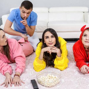 It’s time for a BFFs slumber party. Sera Ryder, Emma Hix and Katie Kush were having fun pillow fighting and eating cheesecake when David their room mate showed up. He got a special bottle with him to spice up the party. It’s time for a game of spin the bottle. Katie and Sera are the ones with the first kiss. However the whole game escalated really quickly. In matter of minutes they are all naked including the roomie David. And what happens if you have 3 pussies and one hard dick? A foursome! David has to bring his A game. He can’t let three such horny chicks down. But once you check out the BFFs foursome video below it’ going to be clear that he can handle the pressure. Finishing off with enough cream for all the hungry mouths! The full scene is out now in beautiful 4K resolution!