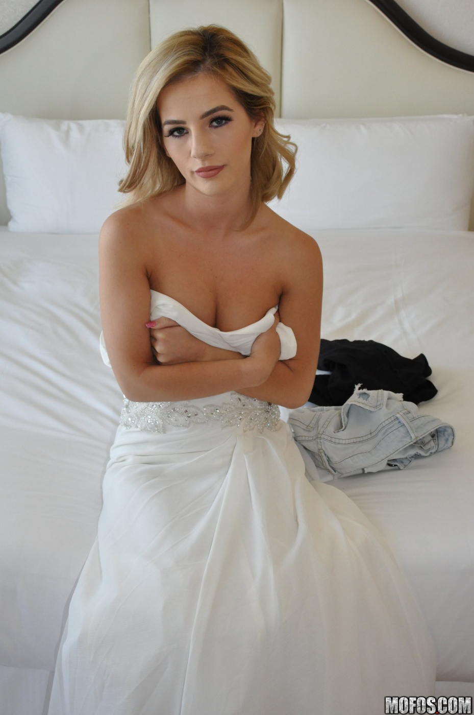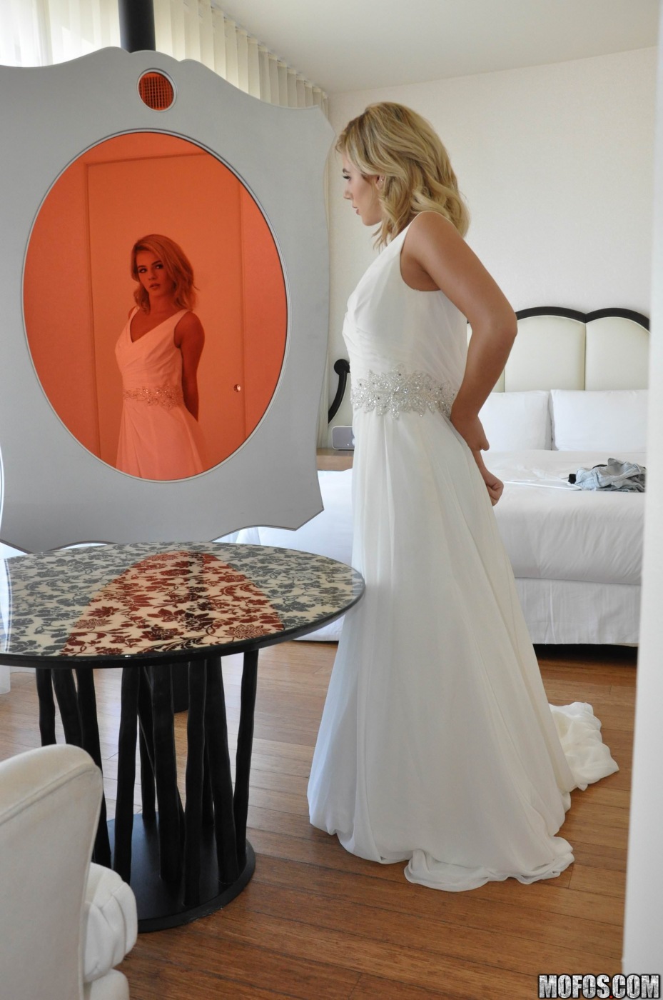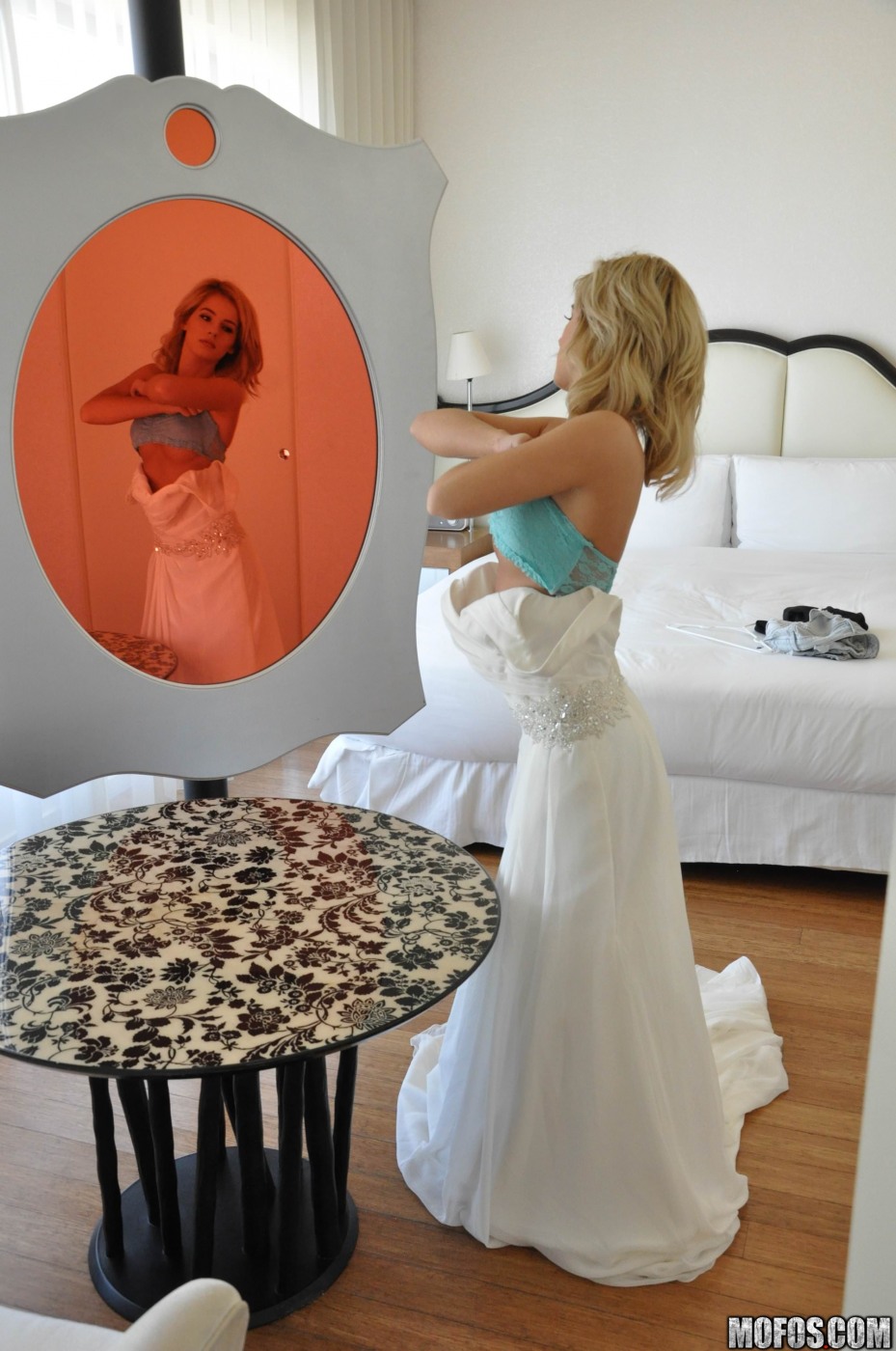 Kinky bridesmaid was pissed at her bestie – the bride – because she was marrying her ex-bf. Now she wants to take a revenge by taking on her wedding dress. However she doesn’t knows that the best man was spying on her, but she got a pretty nice idea.. she wanted to jizz all over the bestie’s gown!