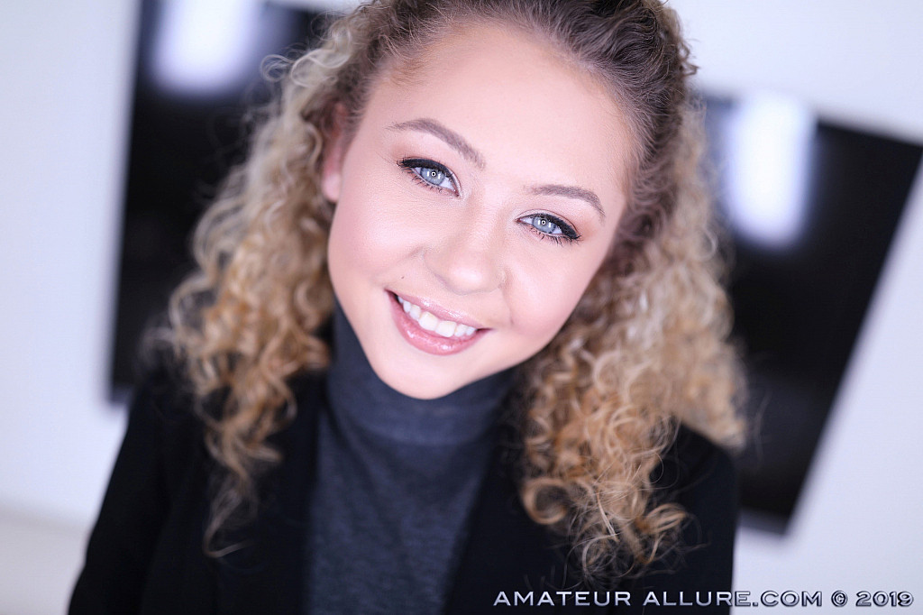Curly haired hottie Allie Addison will be the one enjoying Justin’s hard cock this Friday at Amateur Allure. Coming from Michigan this kinky teen babe can’t wait to have some real fun with a real cock. This cute porn princess can handle a dick like a pro and she is about to demonstrate it. But first she wants to show us her perfect firm booty while wearing a pink thong only. She looks absolutely stunning but she looks even hotter once Justin’s fat dick is in her pretty mouth. Allie Addison sucks that pulsating cock like there is no tomorrow making it ready for deep pussy penetration. She likes to get fucked from behind. Her hot ass can make anyone cum in a second, but she is ready to swallow it all!