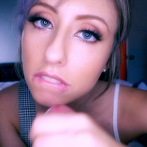 It has been two long years since Daphne Dare had a scene at Amateur Allure. In 2019 we had two actions (here and here) with this mesmerizing brunette and last year we even had a Swallow Salon special featuring Daphne. But finally she is back at Amateur Allure in 2021 for more one on one relaxing oral action. Ray can’t wait to have his hard dick properly sucked. And Daphne Dare is a real pro at blowing cocks. She shows off her perky boobies and pink pussy just to make Ray’s cock even harder. After all she can’t milk a limp dick. Hopefully next time she will ride Ray as well!