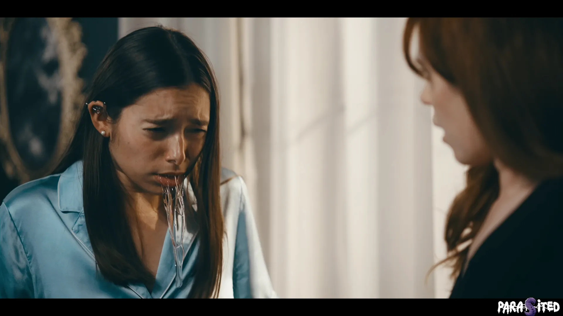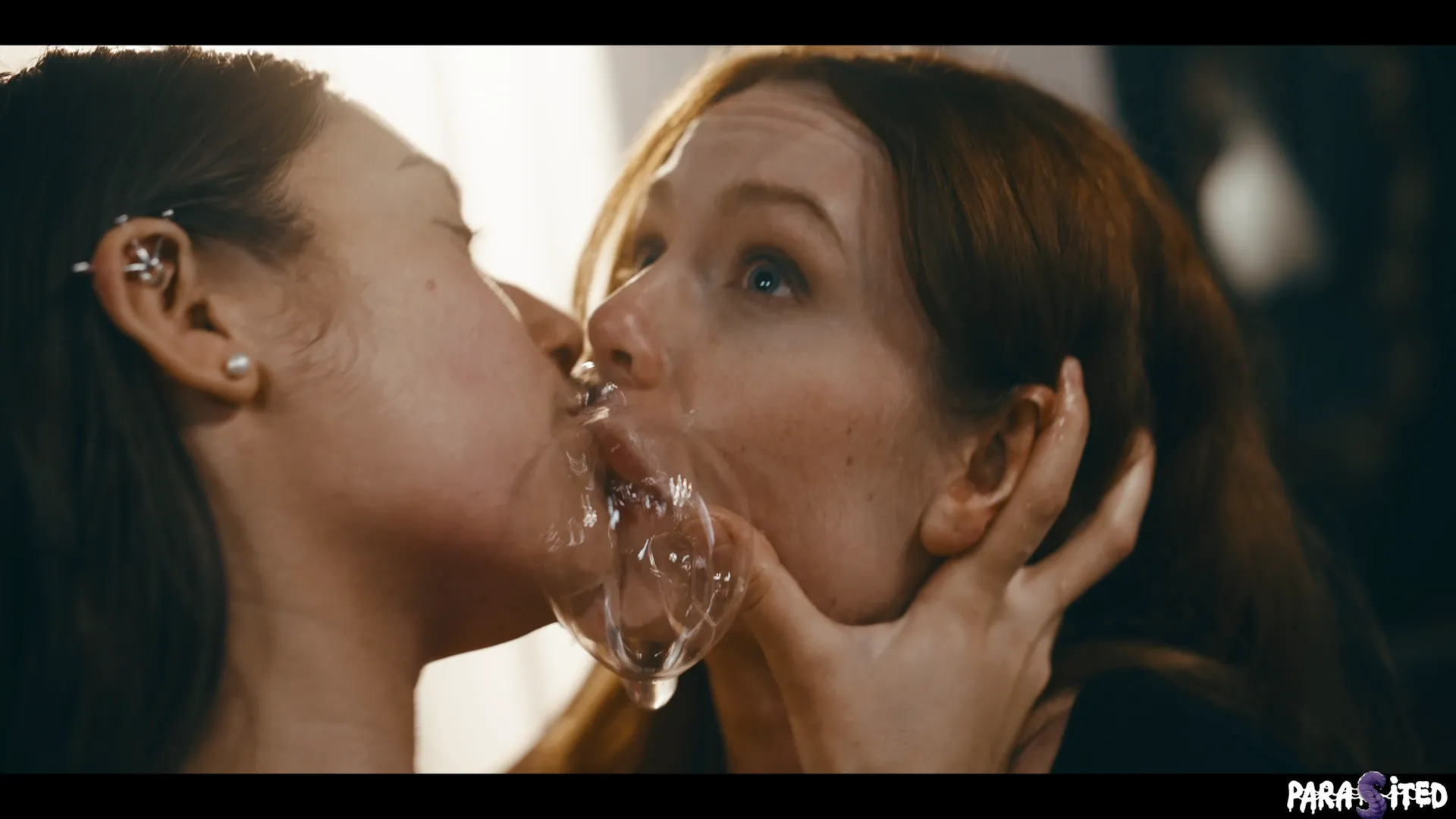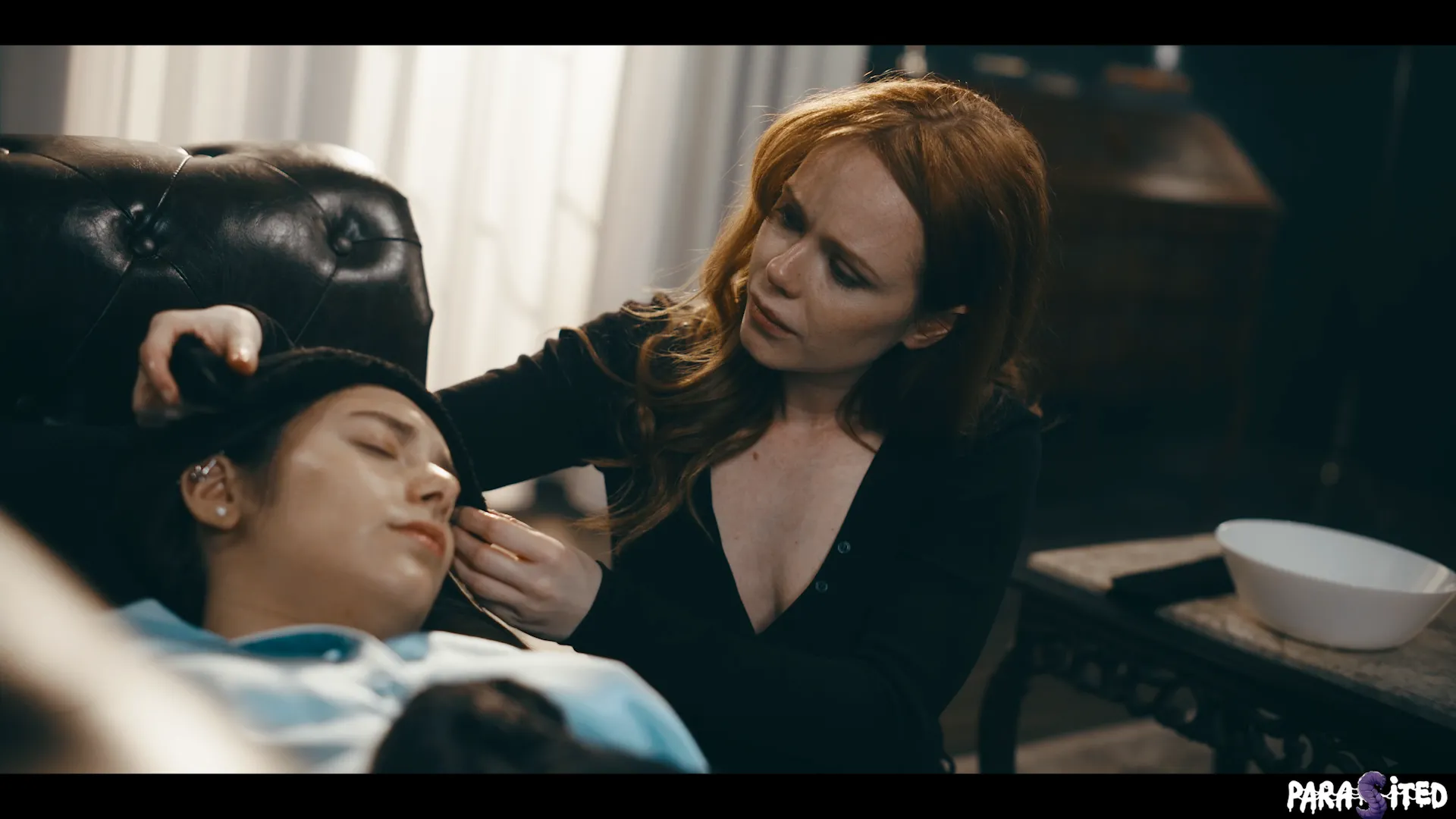 Poor Shelena is seriously ill, but her very good friend Ella Hughes is here to give her a helping hand. She leaves the room because she just received the important call she has been waiting for. She thinks that Shelena is alone in the room, but she has a secret visitor. It’s a tiny parasite who is going to infect her. When Ella returns to the room Shelena is on her feet seemingly fit as never before.. But then everything turns into a nightmare. Her eyes turn pale then she attack Ella transferring over the parasite. With both babes under control, they starts to rip each other clothes off for a wild lesbian encounter! This is Ella Hughes first scene at Parasited, but check out our Shelena porn archive here for her previous actions!