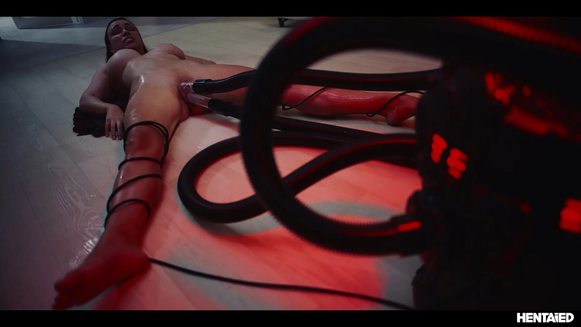Camilo got something special for her lady Octokuro. It’s a brand new vacuum cleaner, the one she saw in the advert. She is super happy about it and wants to give it a spin. But something super strange happens while all alone with the machine in the big garage. The door gets closed by itself and the new vacuum cleaner starts to glow in red. Seems like it’s alive, and it is! It grabs Octokuro by her legs and tears down her clothes. There is no escape for this big tit housewife. Her new household appliance is going to dominate her!