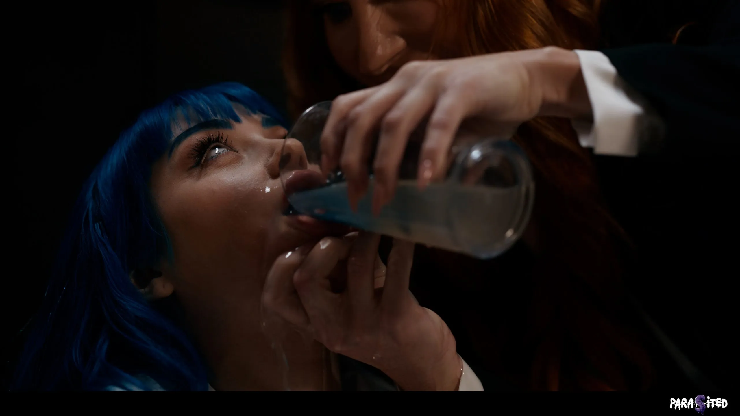 Jewelz Blu is the new super sexy intern who wants a permanent position in the team. Her boss Sophia Locke see’s her future really optimistic, but first Jewelz needs to go through a special initiation process at the office. There is a big glass with a special blue liquid and an alien worm in it. She needs to take the worm in order to get the position. Sounds like a hard task, but once it’s inside it takes over control. Sophia’s plan was to seduce her new blue haired intern and it’s a success. All Jewelz has in her mind now is to spread wide and scissor with her sexy boss. Sophia is more than happy to welcome the latest addition into her Parasited office. Enter below to grab this lust filled lesbian office sex in 4K!