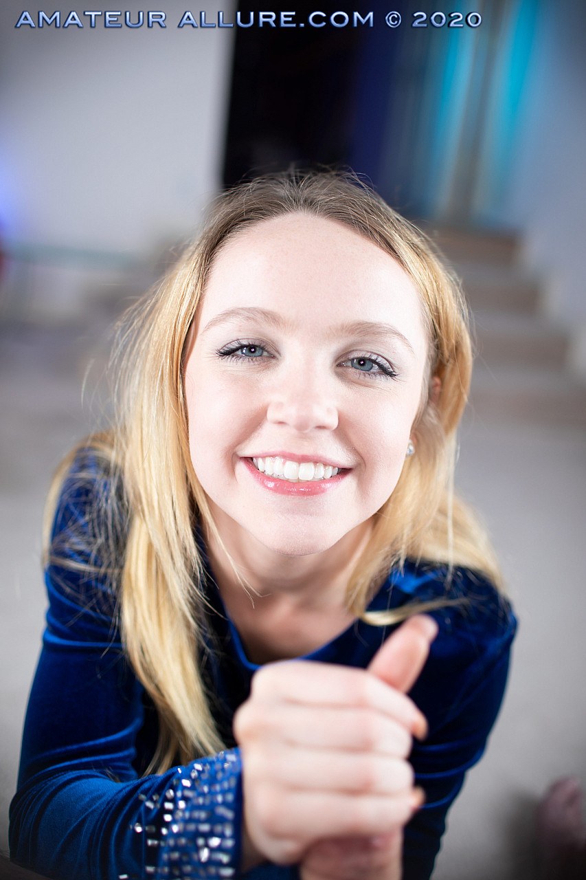 What a great way to start off the new year! Amateur Allure introduces Nikole Nash with a gorgeous set of sucking, riding and swallowing. The year couldn’t have started any better. This all natural blonde babe with mesmerizing 32C perky boobies and blue eyes is ready to tease and please Thomas’s hard cock. Nikole Nash shows up in her favorite blue dress for this Amateur Allure casting wearing no bra under it.