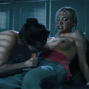 Police officers Anne Claire Clouds and Casey Calvert arrive at the suburban house from which the emergency call was initiated by Cherry Kiss. They arrive at night and the door is wide open. Anna and Casey enter the house one going upstairs and the second staying on the ground floor. Casey who went to the bedroom founds a slimy substance of unknown origin. But she gets attacked from behind why investigating the possible evidence. It’s Cherry who made the call. She transfers the parasite over infecting the first police officer. Then Anna shows up but the same destiny awaits her. Now after both officers are infected it’s time for the real Parasited party. Riding Cherry’s hard dick and cumming all over the place!