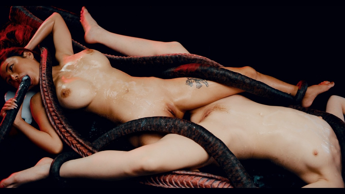Rae Lil Black is visited by her sexy landlord Jia Lissa.. Who happens to be possessed by an alien parasite. Once she gets into Rae’s apartment she immediately jumps on her. That’s the moment when they get abducted by Mr. Alien and end up in a dark empty room. The only things residing there are the big black tentacles. They slowly crawl to reach for Rae’s and Jia’s tight holes. Those pretty mouths and tight pussies need to be filled. First with tentacles then with huge loads of jizz. This isn’t their first encounter with Mr. Alien, just check out the previous episode with Rae and the huge hentaied archive with Jia. Enter below to grab all the scenes in 4K now!