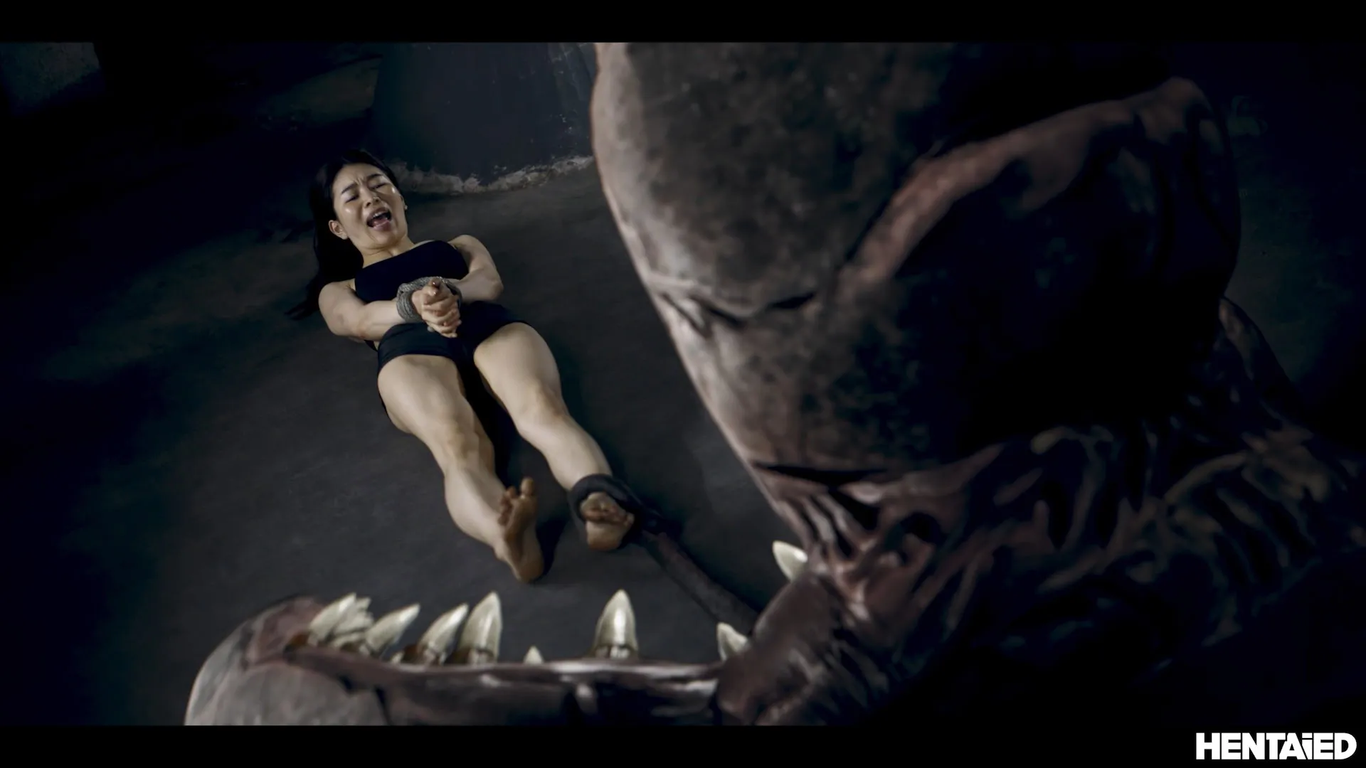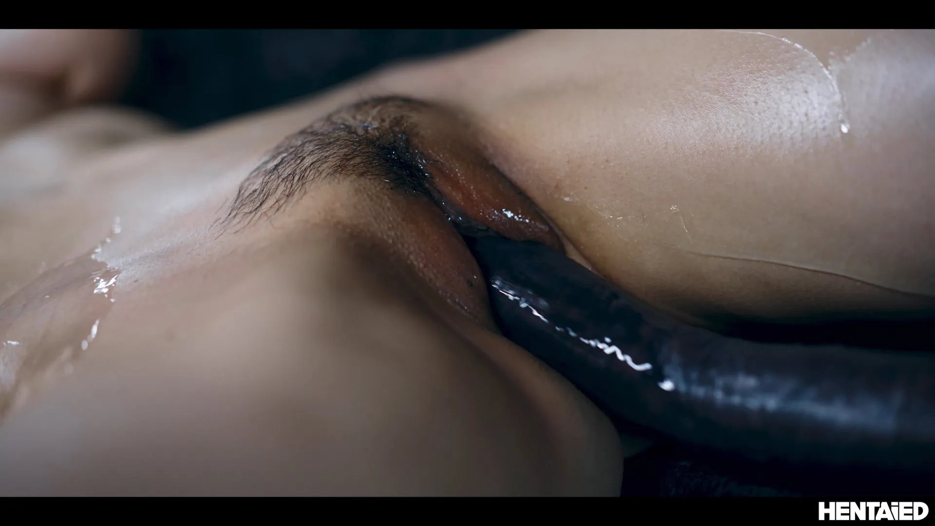 Two big security guards are taking a hot busty babe downstairs in an abandoned building. It’s the gorgeous big tit Japanese babe Rikako Katayama! They tie her up and leave her in a dark room. As soon as they leave a huge monster comes out of the darkness. It releases huge black tentacles, wrapping our Japanese queen by her legs then pulling her up close! She gets swallowed and inside the whole fun begins.. By fucking her tight holes with big black tentacles and filling them up with huge load of cum.. her whole body gets covered with it in the end.