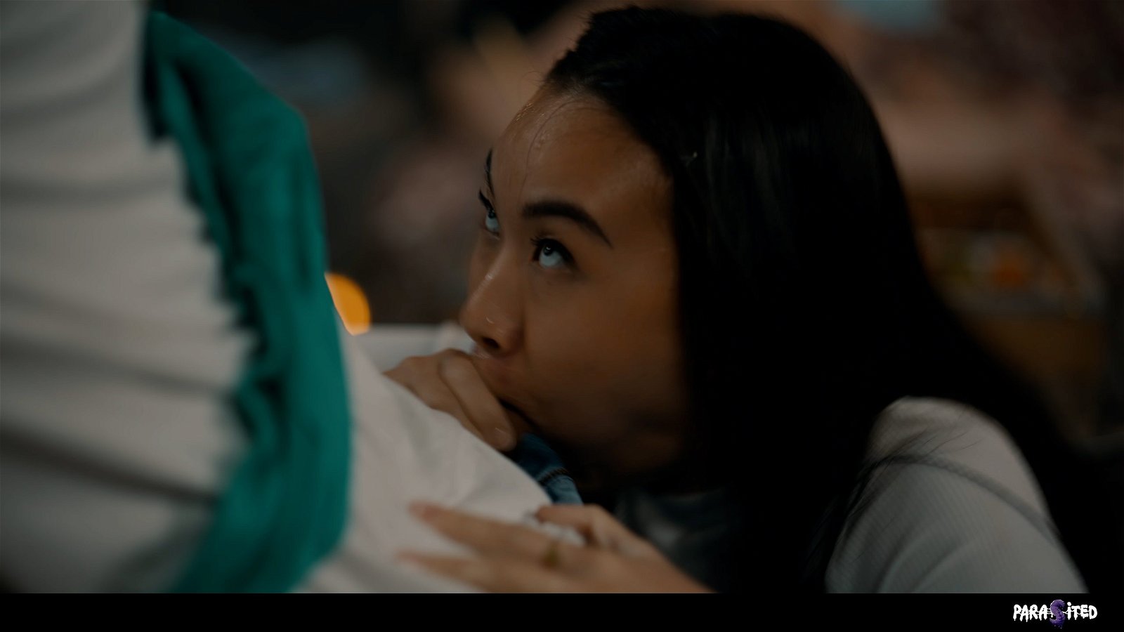 Lovely girlfriends Lulu Chu, Kimmy Kim and Madi Collins are ready for their glamour sushi dinner prepared by Nathan. But they don’t know about the very special ingredient he is using. Some of the nigiri are hiding alien parasites. As they start to eat them the parasites take control. And the feast can move from sushi to pussy. The bffs get horny instantly and crave for wild sex. Including cock milking, scissoring and dick sharing in a foursome. But there is one more parasite left for Nathan.. so he can enjoy fully the wild orgy as well!