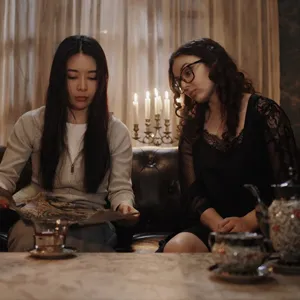 Seems like the tables have turned. Last time in The Hostess 1967 Leana Lovings was the prey but now in The Hostess 1992 she is the one looking for fresh blood. Rikako Katayama is on her Euro trip when she gets lost looking for a shelter. Luckily for her she finds this old mansion deep in the forest. Leana is more the welcoming and invites this hot big tit to stay. But she has no plans to let her leave. Time to bite this hot Japanese tourist then have a sensual Vampired session with her, including some wild scissoring!