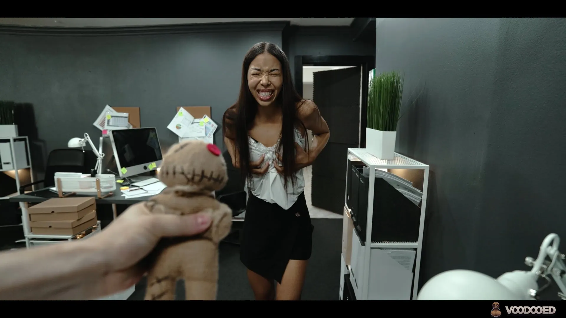 Lia Lin is back at Voodooed. She had her debut scene Reverse Voodoo only 2 months ago and she already wants to be controlled by a voodoo doll once again! Today she is Sam’s boss who is pretty much fed up with her. She always dumps a huge amount of work on him. It’s enough. Sam rocks out his voodoo doll and starts using it to control Lia. She strips down, shows her amazing ass and starts to finger her juicy cunt. She reaches orgasm and squirts all over the office! She totally deserved it!